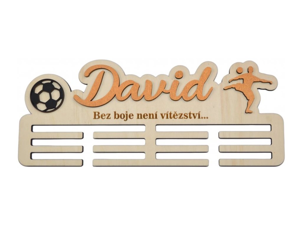 U nás si môžete farebný stojan na medaily nakonfigurovať podľa svojich predstáv. Do poznámky nám napíšte meno športovca, motto a šport, ktorý chcete zvečniť na svojom jedinečnom stojane na medaily. Farbu mena a výšivky si môžete vybrať podľa vlastného želania. Predtým vám pošleme grafický návrh na schválenie a potom ho vyrobíme.