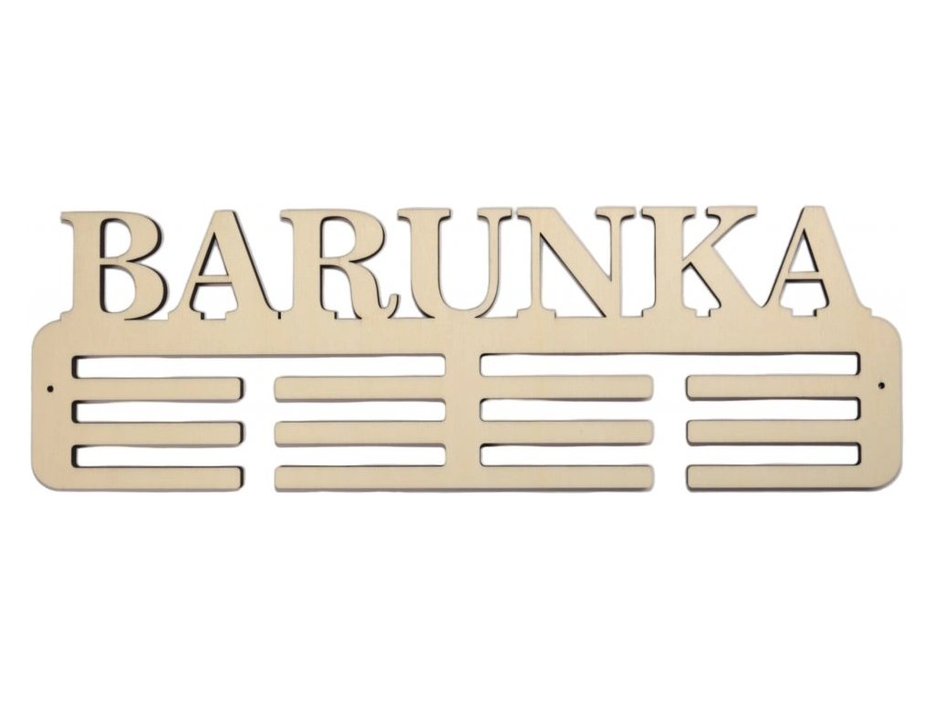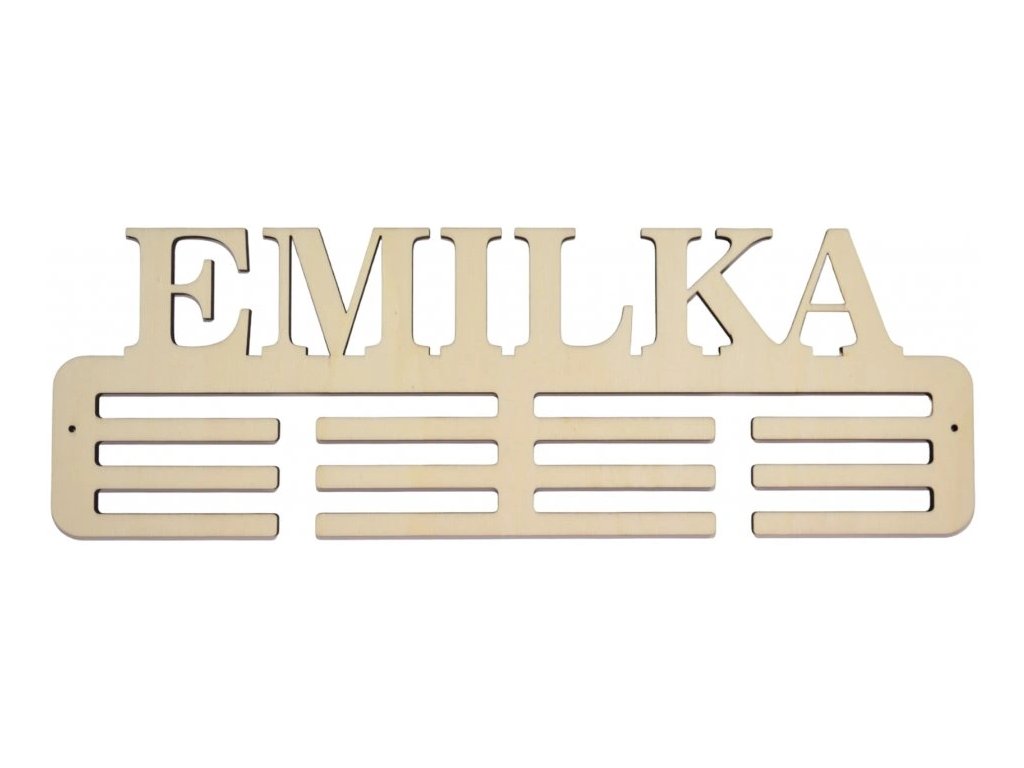 Vešiak na medaily vám vyrobíme s ľubovoľným textom alebo menom. Do poznámky k objednávke nám napíšte meno alebo viac mien, ktoré chcete na vešiak vyryť. Pri vešiaku si môžete zvoliť variant s otvormi po stranách pre jednoduchú inštaláciu do steny. K vešiakom dodávame montážnu sadu s podložkami tak, aby bolo možné medaily pohodlne zavesiť.
